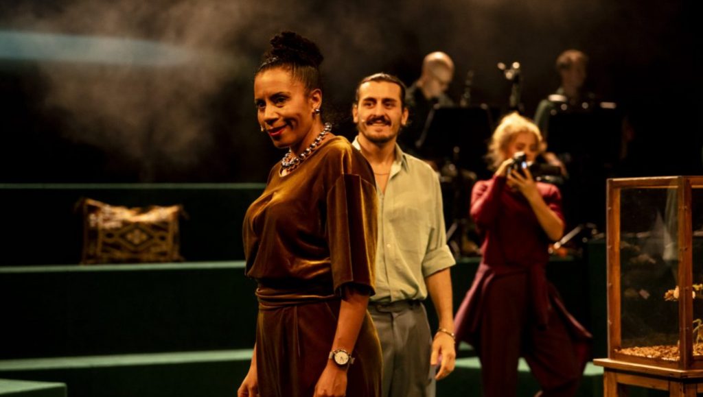 Denn »der Garten ist mehr als ein Ort … ist Wurzel, ist Zuflucht, Zuhause…«, singt die Familie. Ein Leitmotiv, das immer wieder in unterschiedlichen Besetzungen angestimmt wird. Der Garten symbolisiert nicht nur historische Schuld und die ungelösten Traumata, er ist Paradies und Verderben, Heilmittel und Gift. Die inhaltliche Überfrachtung verdaut man vor allem durch Wolfgang Böhmers Musik, die zwischen Stephen Sondheim, Kurt Weill und melancholischem Banjar verführerisch melodiös oszilliert und sich auch nicht vor einer absichtlich misslungen Karaoke-Nummern scheut, an deren Ende ein virtuoses Saxophon-Solo triumphiert.