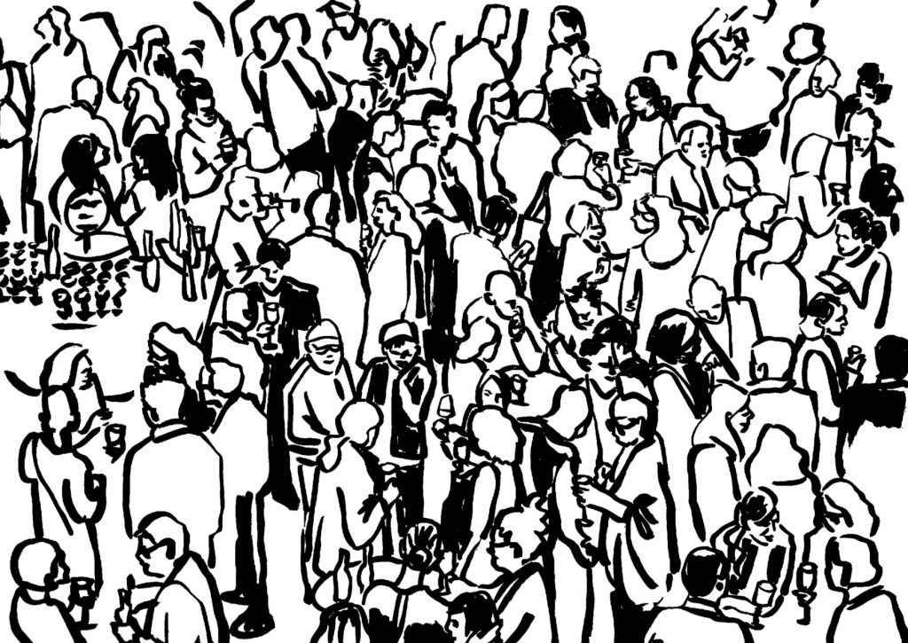 Das Staatstheater Mainz von Markus Müller spiegelt im neuen Programm sein Publikum: Schwarz-Weiß-Zeichnungen aus dem Foyer, in der Theaterpause, in Diskussionen – und natürlich im Saal. Eine nette Idee.